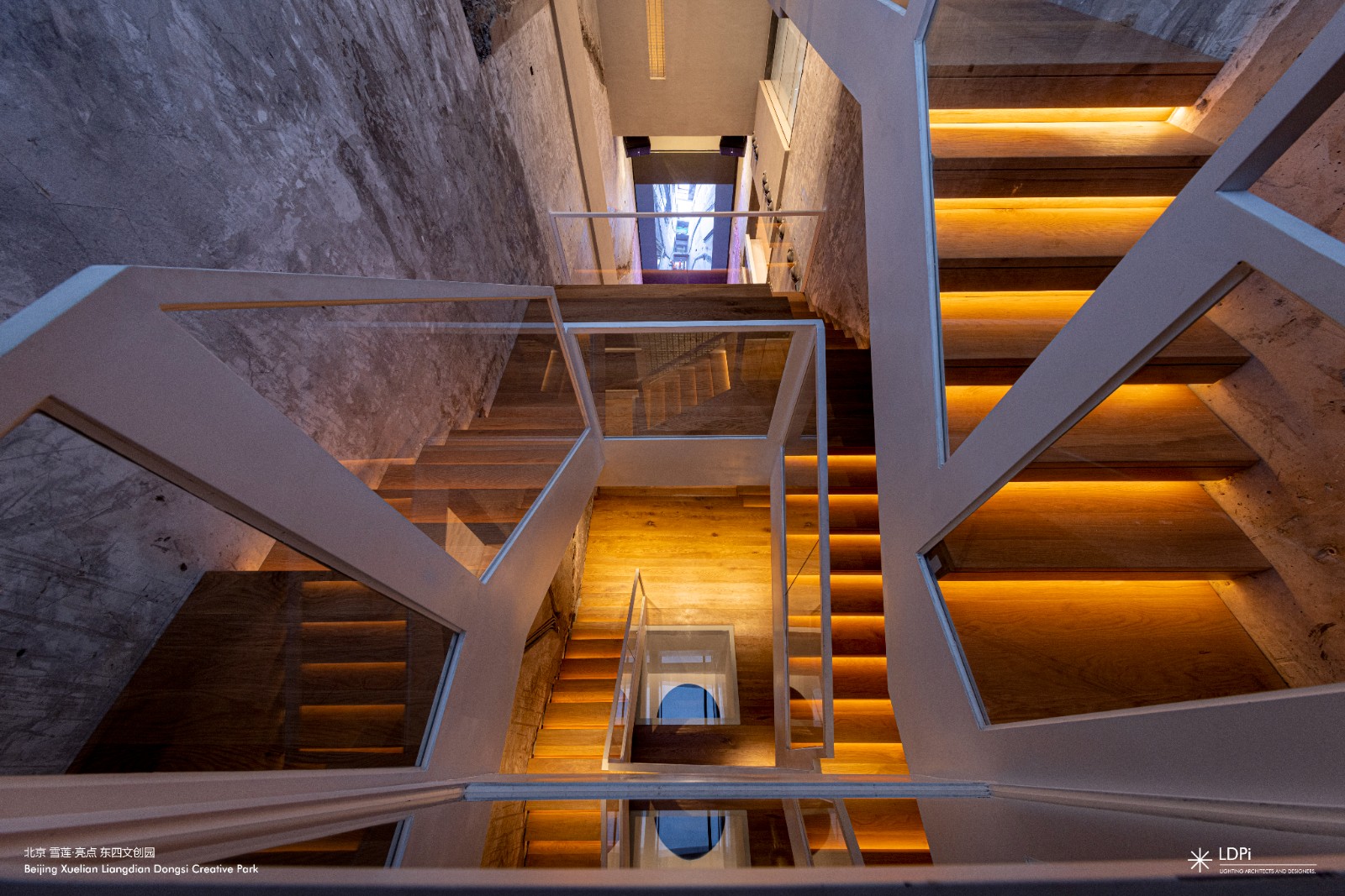 位于大堂对面剧场,宽3.4米,通高16米,其玻璃屋顶使得日光可以在大部分时间提供足够的照明,根据不同活动需求也可对天光进行遮挡。除了安装在顶部和阶梯区域的功能用灯外,楼梯踏步下方的3000K 暗藏灯带灯带也能起到引导观众的作用。舞台部分的灯光则为独立控制。