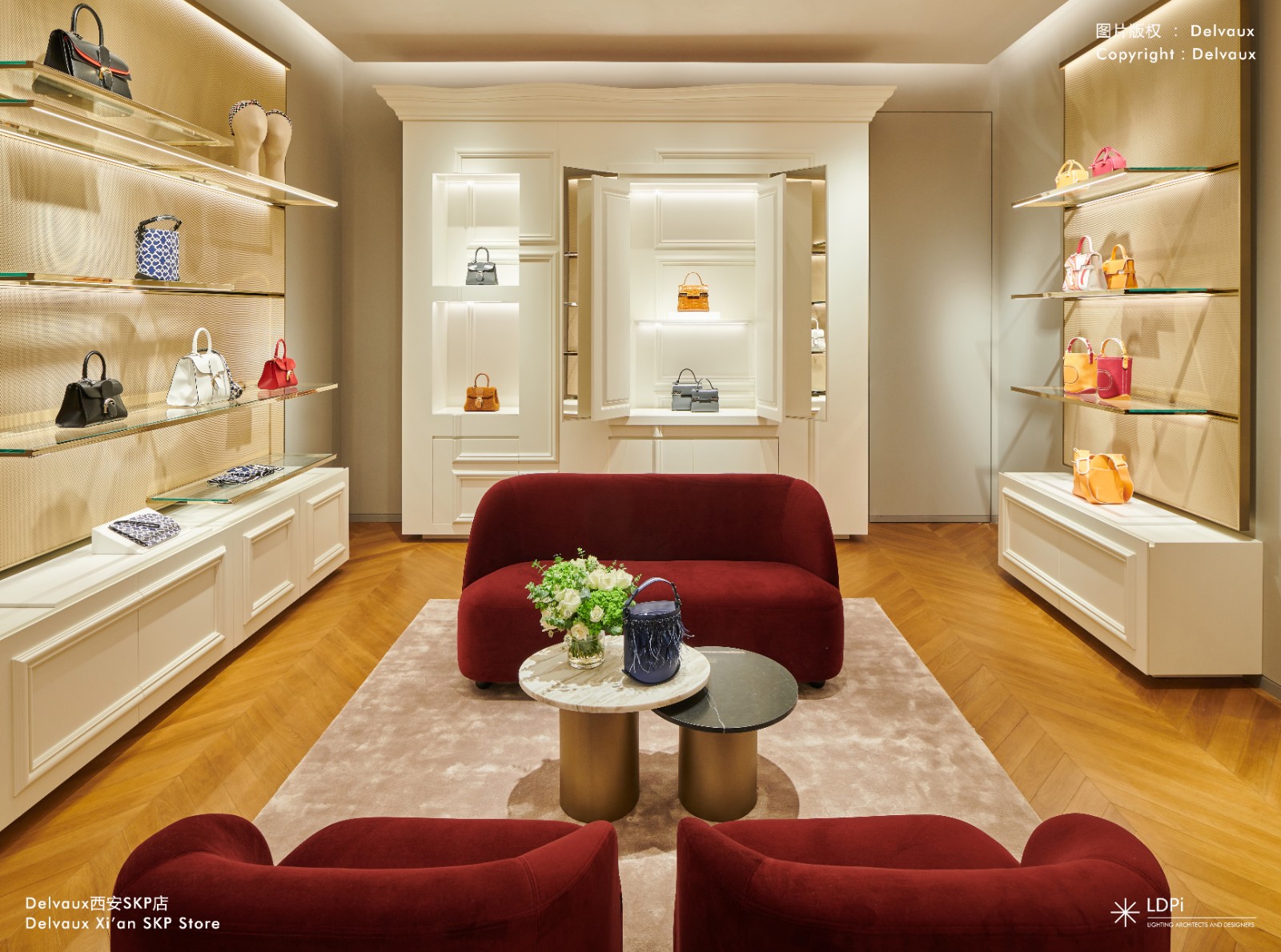 包括西安SKP店在内,Delvaux系列门店的室内设计均由VUDAFIERI-SAVERINO PARTNERS(VSP)完成,延续了 Delvaux的品牌故事及其精品店定位,致力于营造舒适的购物体验。在比利时超现实主义的熏陶下,Delvaux的每一件作品均透着独特的风趣,每一款手袋都饱含着精湛技艺,根据这种不拘一格的精神,LDPi始终坚持在设计过程中用灯光更好地呈现皮具的精湛细节,选用高显色性灯具,打造更加现代化的灯光风格。